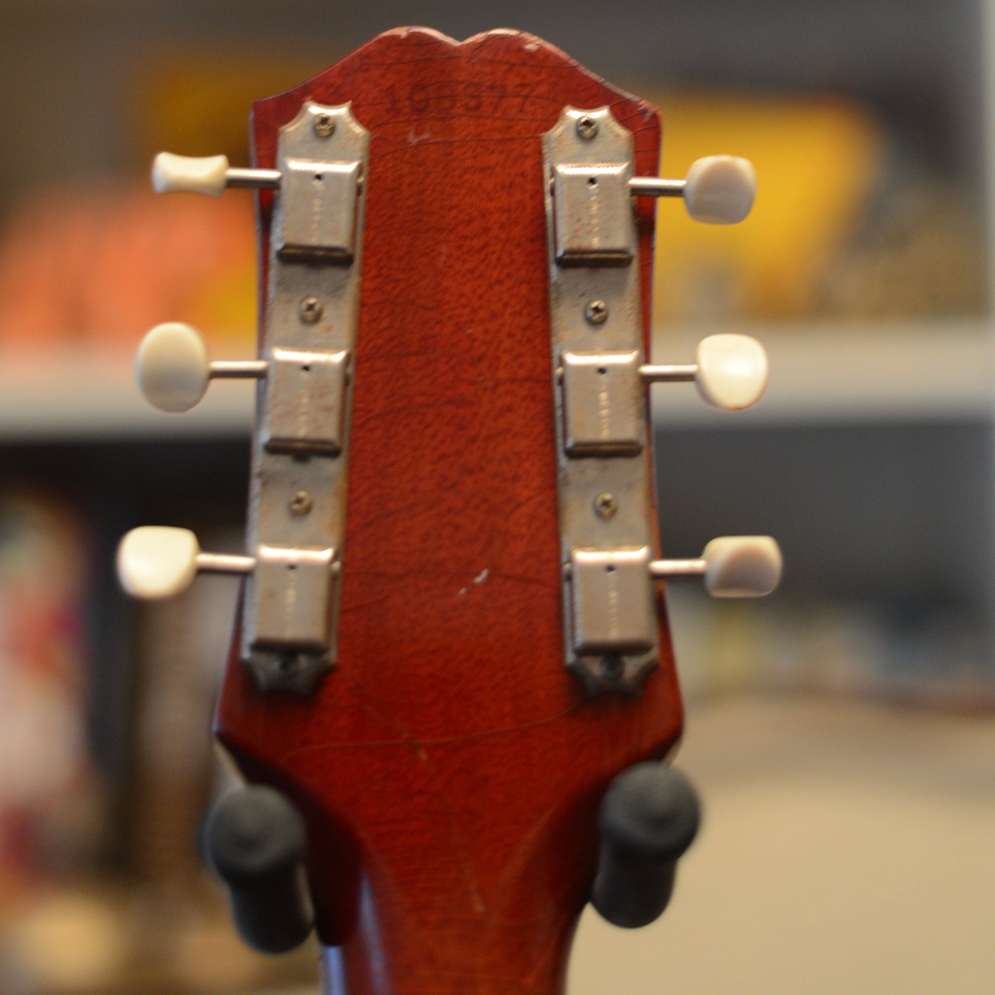 Check out this amazing 1963 Epiphone Coronet! It is 100% original with the exception of an almost invisible headstock repair. This has been professionally glued. It is now rock solid and barely visible. Otherwise, the original dogear P-90 sounds amazing, and it has a great neck profile.