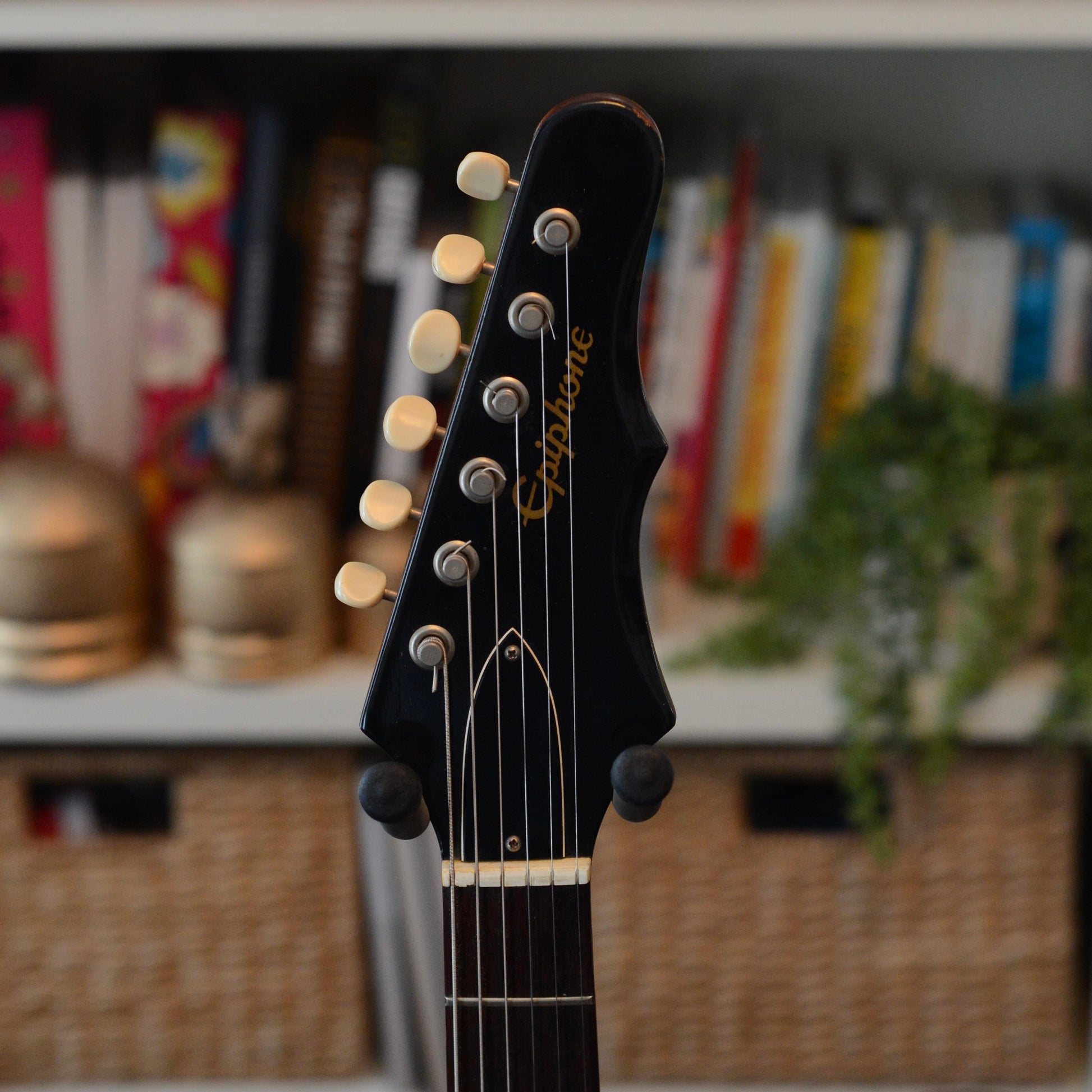Check out this great 1965 Epiphone Olympic! These guitars are so fun to play with the double cut body, which has a cutaway on the back similar to some Fender models.